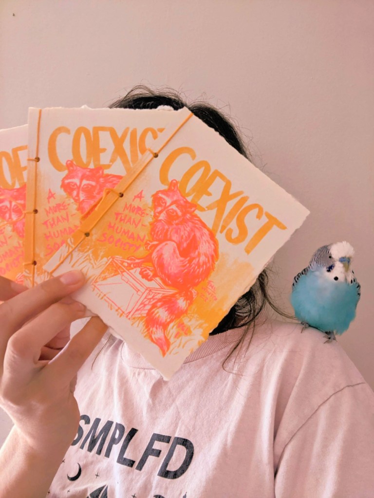 The inaugural volume of A-More-than-Human Society debuted at Gluestick Zine Collective’s 2023 Zinefest and sold out within the first few months of being available! That being said, a tier of Patreon subscribers have access to the archived digital version. The theme of the volume was “coexist”.