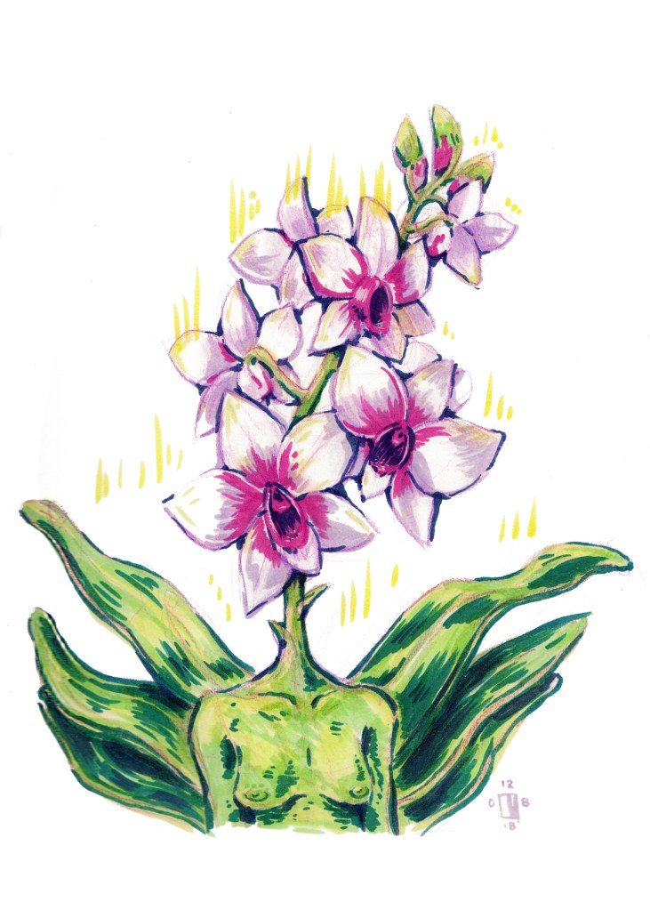 This is the first in the series Growing Nowhere, which explores botanicals and the female figure. Each image employs a slightly different illustration technique.