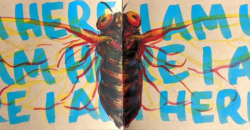 Brood x cicadas are arriving! Observing them around metro Detroit inspired me to create this sketch and poem.